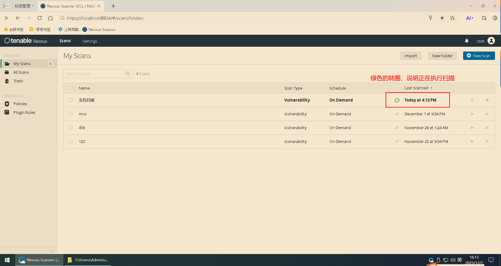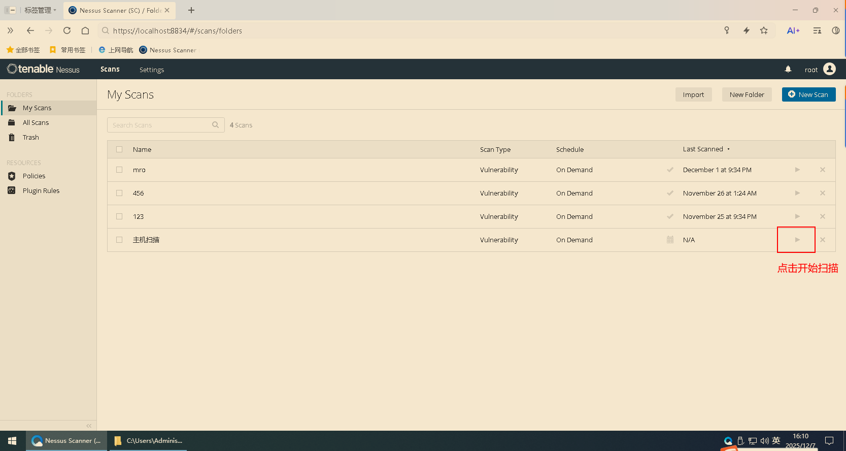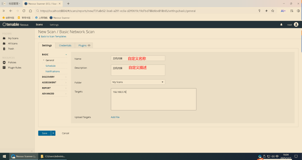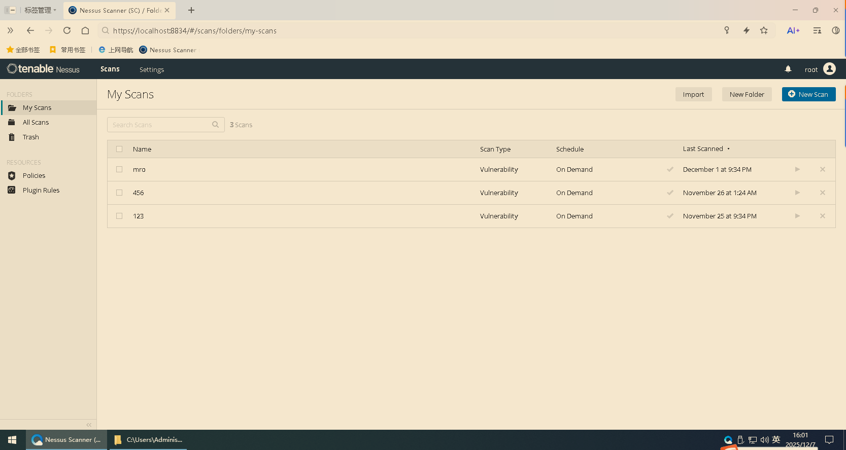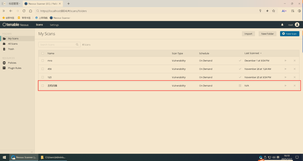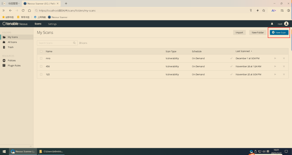 1.打开Nessus工具(版本不限)(https://localhost:8834/):