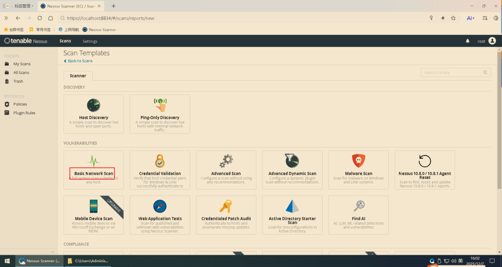 3.选择Basic Network Scan选项