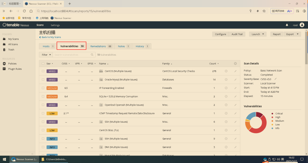 13.切换到Vulnerabilites(漏洞)页签,查看漏洞情况