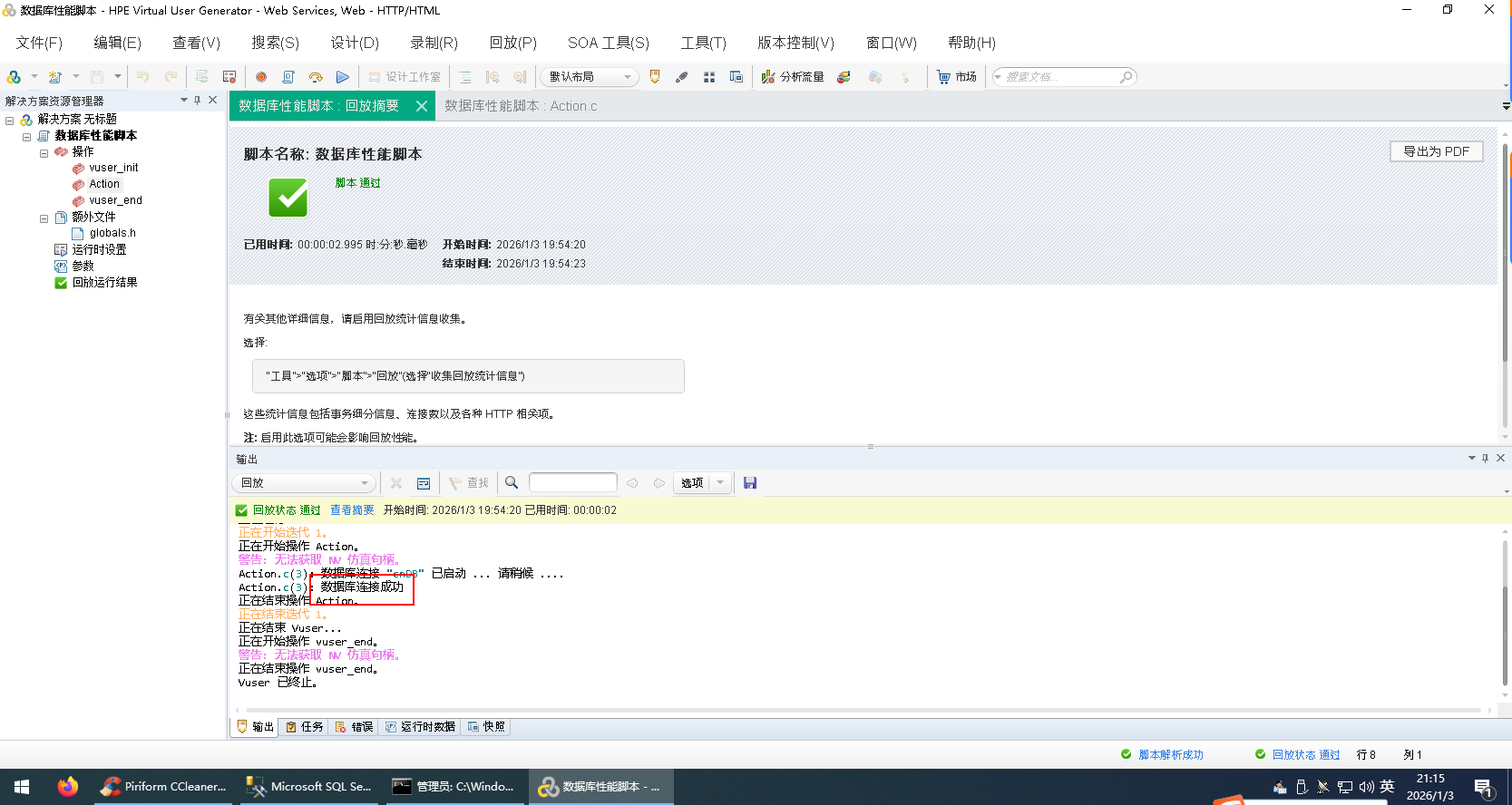 Loadrunner连接SQLServer数据库