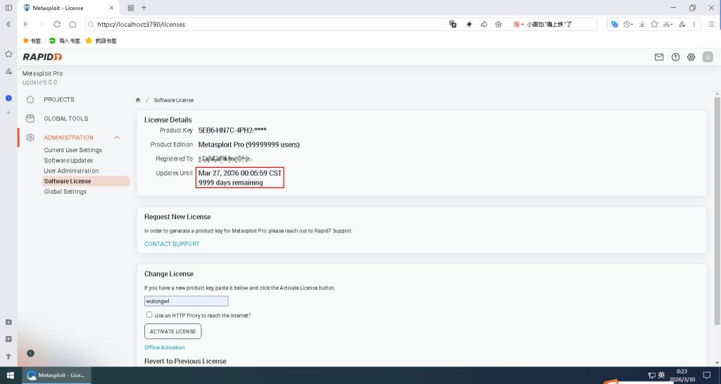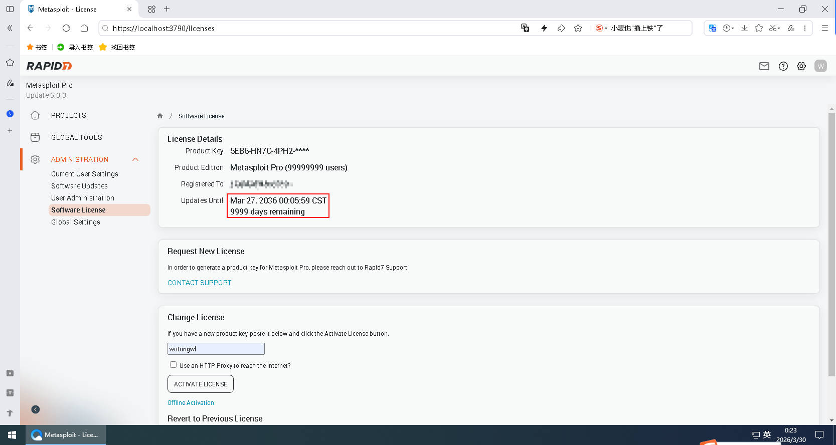 安装参考(安装教程各版本通用,不再赘述):Metasploit Pro 4.22.7 windows版安装教程及工具
