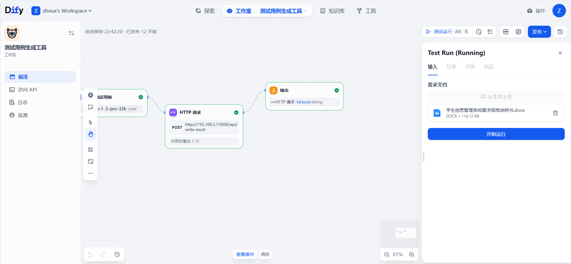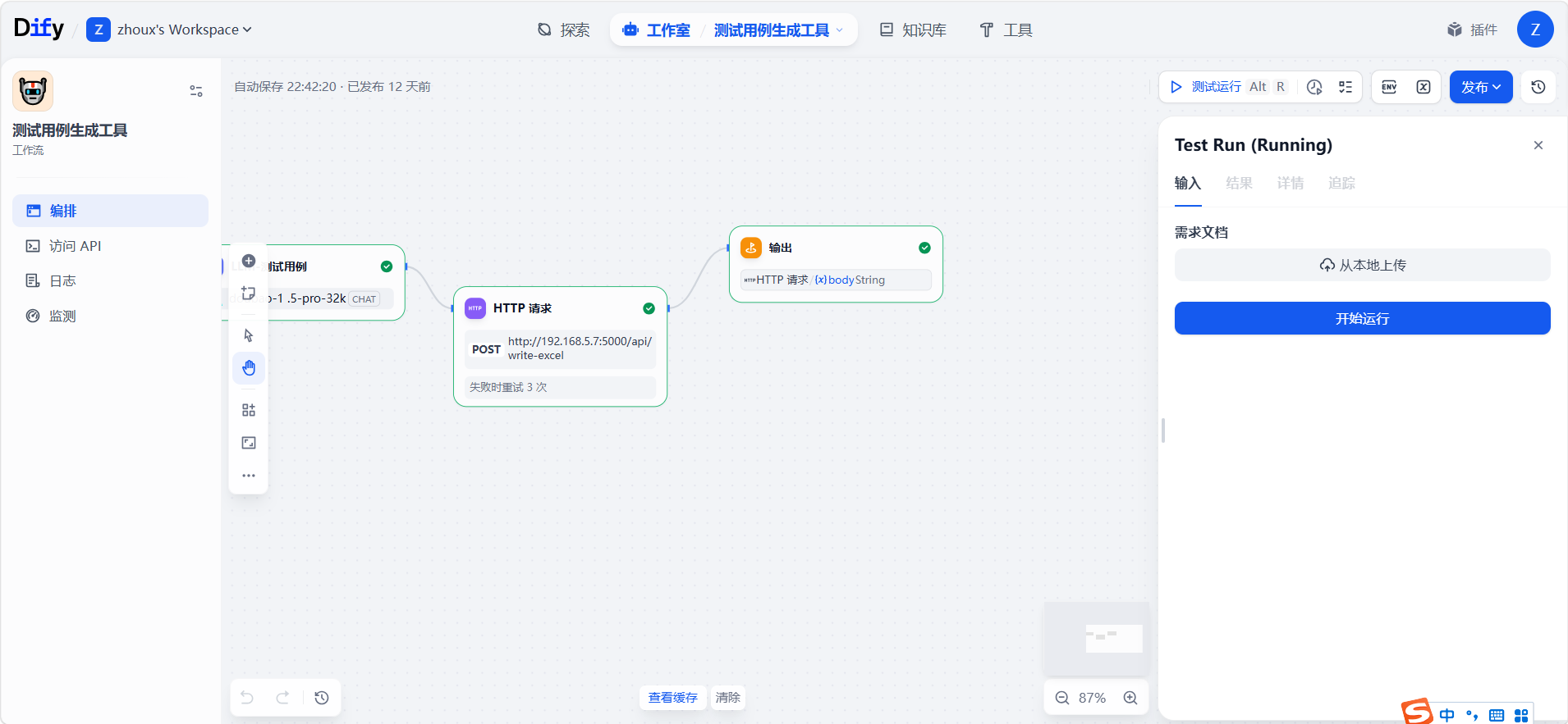 Dify功能测试(自动生成测试用例到本地)