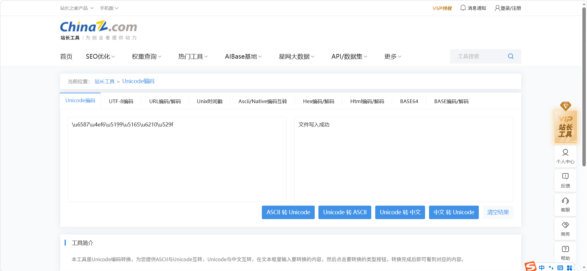 返回的信息:\u6587\u4ef6\u5199\u5165\u6210\u529f,这是Unicode编码,我们转换一下得知实际内容:文件写入成功