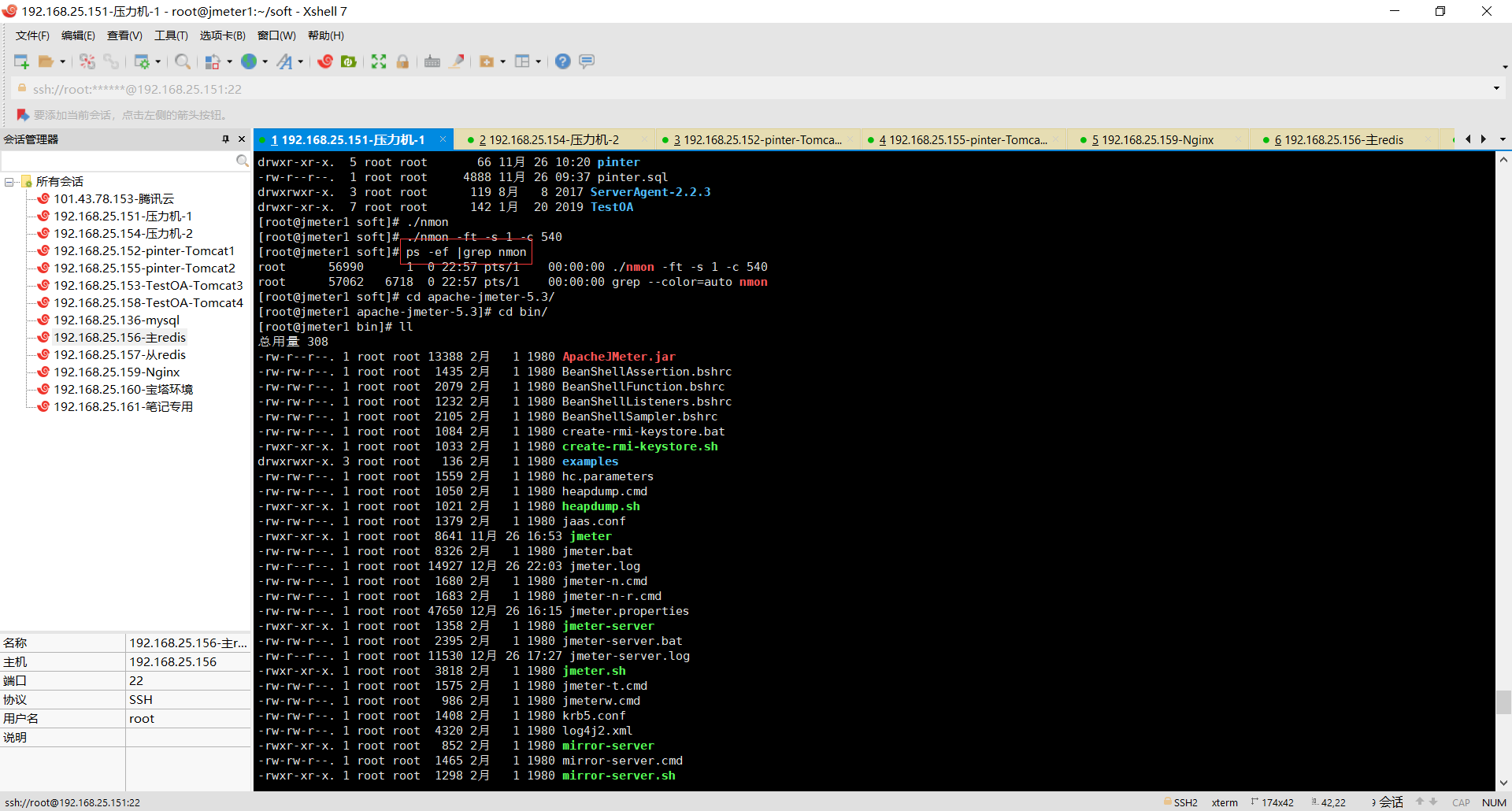 首先在所需服务器上部署好nmon(压力机、应用服务器、数据库服务器、redis主从服务器、Nginx服务器等)